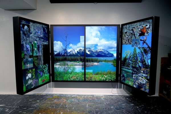 The project merges the traditions of landscape painting with the scientific field research of a naturalist. It is a record of my encounters and experiences of exploring Mount Rundle from its jagged alpine ridges to the waterways of the valley floor. Rather than portraying landscape as a static, scenic vista, CODEX RUNDLE is a multifaceted impression of the land that includes the flora, fauna, geology, weather, atmospheric phenomena and soundscapes. The resulting art work is a tapestry woven from thousands of video clips that presents ‘landscape’ as a dynamic interconnected system.